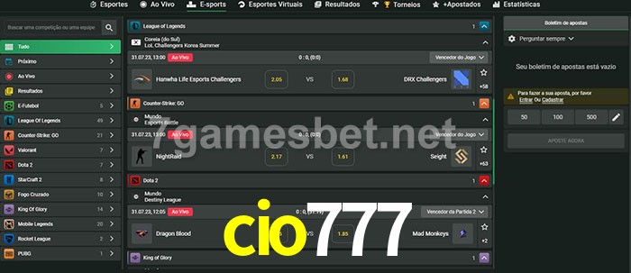 O cio777 oferece uma grande seleção de opções de apostas em e-sports com probabilidades competitivas